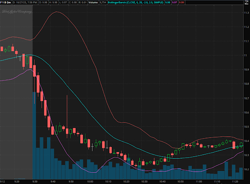 Let’s say Ford opens with a sharp drop from $11 to $10.65 — a big move at first glance. The impulse might be to fade this. But if you watch carefully, by 9:40 AM, the price action flattens. The candles start shrinking. Volume dies down. The slope of the move weakens. This is not a waterfall — it’s price acceptance.